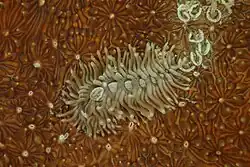 Phestilla viei is a species of coral-feeding sea slug, an aeolid nudibranch, from the family Trinchesiidae, described in 2020. It has been identified as a sister species of Phestilla fuscostriata based on DNA barcoding using the COI gene.[1] The genus Phestilla currently includes nine recognized species,[2] eight of which are obligate corallivores, with each particular species predating on only one species or genus of coral.[3] Its distribution is restricted to the Indo-Pacific Ocean.[4]