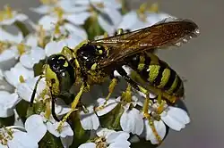 Philanthus crabroniformis is a species of bee-hunting wasp (or "beewolf") of North America. The species primarily preys upon Halictidae. They nest in sandy soils.[1]