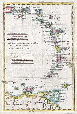 In 1640, Bell led a group of settlers to Saint Lucia. By 1641 he was on Barbados as governor.[23] He was appointed by James Hay, 2nd Earl of Carlisle, who owned the island, with the approved of Lord Warwick and the Committee of Trade and Plantations.[24] The island had been settled in 1627 by a group of Englishmen hoping to develop tobacco plantations, but the leaf turned out to be poor quality. They then tried cotton, ginger and indigo, but none of these crops were very successful. In the mid-1640s the settler James Drax tried sugar, struggling at first to master the complex production process. By the end of the 1640s the difficulties had been solved. Prices were extremely high, and the island became "one of the richest spots of earth under the sun". Originally the labor force was provided by poor whites, but the planters found that Africans slaves worked harder, cost less and were better able to tolerate the climate. By 1650 the island had 6,000 black slaves and 24,000 whites.[25]
