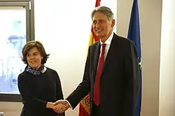 Hammond served in the Shadow Cabinets of Michael Howard and David Cameron as Shadow Secretary of State for Work and Pensions from 2005 to 2007 and Shadow Chief Secretary to the Treasury in 2005 and from 2007 to 2010. After the formation of the Coalition Government in May 2010, he was appointed Secretary of State for Transport and was sworn of the Privy Council. Upon the resignation of Liam Fox over a scandal in October 2011, Hammond was promoted to replace him as Secretary of State for Defence, before being further promoted in July 2014 to become Foreign Secretary.[5][6]