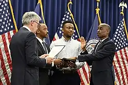 Jefferson sworn in as a member of the Federal Reserve Board of Governors by Jerome Powell in May 2022