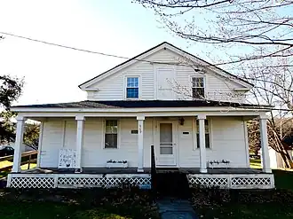 Built between 1863 and 1864, this historic structure is a vernacular, Greek Revival-style frame dwelling that consists of a two-story front section with a one-story rear ell. It has a gable roof and a full-length front porch with a shed roof, and was the home of nineteenth-century gospel music composer Phillip Paul Bliss (1838-1876).