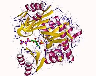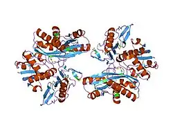 4. ^ a b c d Sampei, Gen-ichi (16 August 2010). "Crystal structures of glycinamide ribonucleotide synthetase, PurD, from thermophilic eubacteria". Journal of Biochemistry. 148 (4): 429–437. doi:10.1093/jb/mvq088. PMID 20716513.