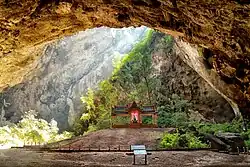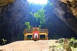 The Phraya Nakhon cave (Thai: ถ้ำพระยานคร, romanizedTham Phraya Nakhon) is a cave in Khao Sam Roi Yot National Park, Hua Hin, Prachuap Khiri Khan Province, Thailand.[1] It features the royal Kuha Karuhas Pavilion, illuminated by natural sunlight through a large skylight.[1][2] The cave is accessible by a forested hike and has two chambers with rock formations as well as ancient inscriptions.[3]