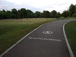 The park hosts several miles of paved paths suitable for walking, running, biking, and inline skating. Skate Escape across from the park at the 12th Street entrance rents both bikes and skates.[40] On weekend afternoons, skateboarders and inline skaters often share the open, paved area inside the 12th Street entrance.[41]