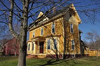 The Pierce House is a historic house at 128 Salem Street in Reading, Massachusetts. The 2+1⁄2-story wood-frame house was built sometime between 1875 and 1880 for Samuel Pierce, owner of the nearby Pierce Organ Pipe Factory. The house has Stick style/Eastlake style features, including a steeply pitched gable roof with exposed rafter ends, and an elaborately decorated entry porch with square chamfered columns and brackets in the eaves.[2]
