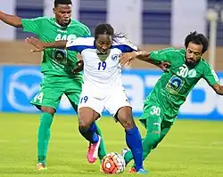 In January 2015, he again moved out to the Middle East and this time to Oman where he signed a six-month contract with Oman Professional League club, Saham Club.[26] He made his debut and scored his first goal for the club on 14 January 2015 in a 2–2 draw against Al-Shabab Club in the Round of 16 of the 2015–16 Sultan Qaboos Cup which was later won 5–3 on penalties by Saham, which included a penalty from the Burkinabé international.[27] He made his Oman Professional League debut on 18 January 2016 in a 0–0 draw against Al-Khabourah SC[28] and scored his first goal on 23 January 2016 in a 3–1 loss against Al-Nahda Club.[29]