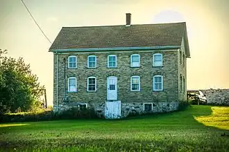 The farm complex includes a two-story brick veneered frame farmhouse building, on a three-foot thick fieldstone foundation. It has a one-story kitchen wing.[2]
