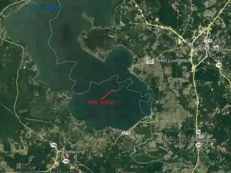 Pine Island is an island situated in the southern end of Lake Livingston, Texas, a man-made reservoir on the Trinity River. It is within the boundaries of San Jacinto County, Texas.