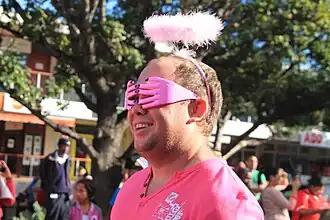 The Pink Loerie Mardi Gras and Arts Festival is an annual LGBTQ Pride carnival event and parade held in Knysna, a coastal township in the Western Cape province of South Africa. Events include their version of the Wigstock drag queen festival, a bear fest, athletic events, and an art festival.[1] It is one of the country's largest LGBTQ events.[2] Since its start in 2000 it has grown to be a significant event for the town culminating in the grand finale of Pink Loerie, Knysna Pride parade and its 1000-person after-party held on the final weekend with floats, performers, and DJs. The Knysna loerie is a green bird but the color pink has a long association with LGBTQ culture.[3]