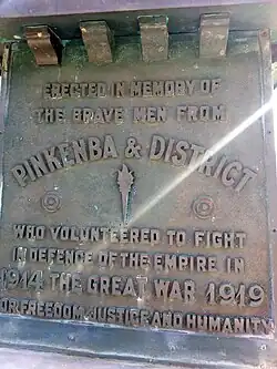 - ^ "PINKENBA SOLDIERS' MEMORIAL". The Brisbane Courier. No. 19, 213. Queensland, Australia. 18 August 1919. p. 7. Retrieved 13 January 2017 – via National Library of Australia.