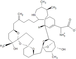 Pinnatoxins are part of the cyclic imine group of marine toxins. This group currently consists of pinnatoxins, pteriatoxins, spirolides, gymnodimines, spiro-prorocentimine and portimine. Eight different types of pinnatoxins have been described, named pinnatoxin A to H.[12][13][14][15][16]