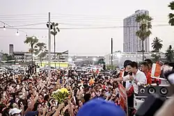 Following the general election and subsequent coalition announcement, the House of Representatives held its first session on 5 July to select a Speaker, Wan Muhamad Noor Matha, founder of the coalition-member party, the Prachachat Party.[55] In the days preceding the premiership vote, Pita and the MFP party held rallies with supporters in Bangkok.[56] Pita appealed to the assembly to support his government, in accordance with the mandate granted by the people in the general election.[57]