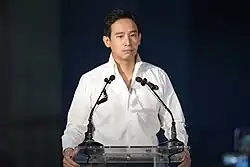 Pita Limjaroenrat (Thai: พิธา ลิ้มเจริญรัตน์, RTGSPhitha Limcharoenrat [pʰí(ʔ).tʰāː lím.tɕā.rɤ̄ːn.rát] ; born 5 September 1980), nicknamed Tim (Thai: ทิม, RTGSThim),[1] is a Thai businessman and former politician. A former member of the House of Representatives, he previously served as leader of the Move Forward Party, the de facto successor to the dissolved Future Forward Party, from 2020 to 2023, and then as the advisory chair of the party from 2023 to 2024.