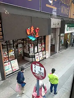 In 1920s, Tak Yu Restaurant, one of oldest restaurants in Hong Kong, was built at 372-378A Shanghai Street, at the southeast corner of the junction with Pitt Street. In 1967, the restaurant was rebuilt as a high-rise Tak Yue Mansion, with the restaurant continuing its operation on lower floors.[59] In 2012, the restaurant ceased to operate and the whole building was sold in 2019 and later the premises of the restaurant turning into a care home.[60][61][62][63]