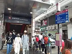 MTR provides services to the area around the street by Yau Ma Tei station, with two direct lines, Kwun Tong Line, from Whampoa station to Yau Tong station, and Tsuen Wan Line, from Tsuen Wan station to Central station. The station has two exits on the street. Exit A1 is on the section between Nathan Road and Portland Street. Exit A2 is one the section between Nathan Road and Tong Fong Street.[10][16] Both exits were not an accessible, non-barrier free exit, providing only staircases. Although Exit A2 is the nearest exit to Kwong Wah Hospital, people on wheelchairs or carrying baby with pushchairs must go to the lift at Exit Lift on Waterloo Road to reach the ground, and cross several the roads.[103] Yau Tsim Mong District Council had proposed the a subway to link Yau Ma Tei station and Kwong Wah hospital, the Highways Department considered the proposal infeasible as it required reconstruction of the ventilation duct of tunnel and station, and closure of Exit A2 and two lanes of Nathan Road for more than two years.[104]