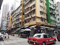 The street features with multi-storey buildings mixing use of commercial and residential, officially known as composite buildings, typical in urban area of Hong Kong.[14][15]