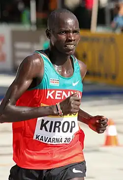 ![]() Pius Maiyo Kirop at the 2012 World Half Marathon Championships in Kavarna, Bulgaria | ||||||||||||