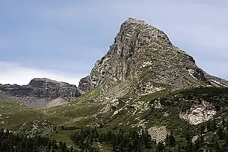 1. ^ Retrieved from the Swisstopo topographic maps. The key col is located north-west of the summit at 2,709 metres.