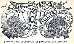 In 1873,[7] Torres successfully published his first catalogue which went through two more editions. The first edition, in common with many other early stamp catalogues, was not illustrated except for on the cover. In July that year, he also began to publish the stamp collecting journal La Posta Mondiale which offered stamps for sale, a lithographed page of the stamps discussed in the journal, and correspondence from collectors. Packets of mixed stamps were offered as well as special arrangements for other dealers.[8] The focus of the magazine was on Italy and Spain with a significant amount of coverage of revenue stamps,[8] too much in the opinion of The Stamp-Collector's Magazine, who otherwise welcomed the magazine, but commented that the less said of its coverage of Italian revenues and municipal stamps, the better.[9] He established a philatelic club in his premises where collectors could meet.[8]