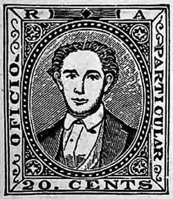 By 1871–72, Torres was running a stationery shop in Livorno (Leghorn), on the western coast of Italy, in cooperation with Usigli. He also sold stamps and with Usigli came up with a plan to supply free revenue stamps to Italian municipalities, which Torres designed, in return for the right to sell the stamps into the philatelic market.[5] By then he had changed the order of his name to Plácido Ramón de Torres, which Gerhard Lang-Valchs has speculated may have been to give himself the appearance of a double surname (Ramon and Torres) in order to hide his likely illegitimacy.[6]
