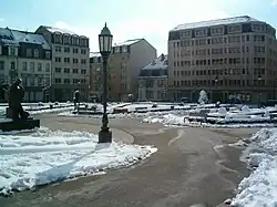 The Place des Martyrs is a garden square in Luxembourg City, in southern Luxembourg. The square lies to the south of the Pétrusse valley, in the quarter of Gare. It is colloquially known as the Rose Garden (Luxembourgish: Rousegäertchen), on account of the red roses that dominate the garden's floriculture.[1]