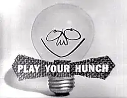 Play Your Hunch is an American game show first hosted by Merv Griffin from 1958 to 1962 and then hosted by Gene Rayburn and finally by Robert Q. Lewis until 1963.[1] The announcers for the show were, respectively, Johnny Olson, Wayne Howell and Roger Tuttle. In 2001, Play Your Hunch was ranked #43 on TV Guide's "50 Greatest Game Shows of All Time".