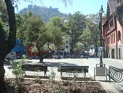 Plaza Camilo Mori (Camilo Mori Square) is located in the commune of Providencia, in Santiago, Chile, between the streets of Constitución and Antonia López de Bello, in the heart of Barrio Bellavista. One block away is Pio Nono street, which leads to the Chilean National Zoo and San Cristóbal Hill. Plaza Camilo Mori is also an important meeting place for bohemian culture in Santiago,[1] where important places such as the house-museum of Pablo Neruda (known as La Chascona),[2] the Centro Mori, pubs and restaurants spreading from the plaza south along Constitución street and above all, a great number of workshops, theatres and cultural centers can be found. Nemesio Antúnez, Pablo Neruda, Mario Baeza and Camilo Mori are examples of how artists have given their names to this part of Barrio Bellavista. Access to the square is via station Baquedano