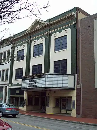 Plaza Theatre, also known as the Capitol Theater or West Virginia State University Capitol Center, is a historic theatre building located at Charleston, West Virginia. It was constructed about 1912 and is a turn-of-the-century theater/commercial/office building located in a transitional business district of downtown Charleston. The three-story brick structure is characterized by eclectic Classical Revival style architecture incorporating a number of elements from classical Greek forms. The theater's streetfront entrance is flanked by two commercial storefronts. The dimensions of the Capitol Theater building are 53 feet wide by 163 feet deep (16 by 50 m).[2]