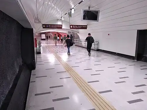Plaza de Armas is a transfer station between the Line 3 and Line 5 of the Santiago Metro. It is located under the Plaza de Armas of Santiago. The Line 5 station was opened on 3 March 2000 as part of the extension of the line from Baquedano to Santa Ana. The Line 3 station was opened on 22 January 2019 as part of the inaugural section of the line, from Los Libertadores to Fernando Castillo Velasco.[2]