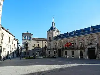 Other buildings in the square are the 16th-century Casa de Cisneros and the old city hall, the Casa de la Villa de Madrid.[5] The primitive Fountain of San Salvador (or Fuente de la Villa), located in the centre of the square, also disappeared.[6]