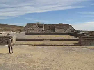 Plazuelas is a prehispanic archaeological site located just north of San Juan el Alto, some 2.7 kilometers (1.7 miles) north of federal highway 90 (Pénjamo-Guadalajara), and about 11 kilometers (6.8 miles) west of the city of Pénjamo in the state of Guanajuato, Mexico.[1] The site is open to the public; it is dominated by a large, rectangular plaza with several pyramidal structures and platforms, along with a massive ball court. To the north of the structures is a field of boulders with thousands of glyphs carved into them.