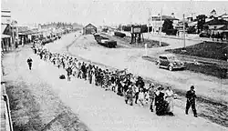 Procession for Bowling Carnival circa 1938, led by Mr H. Christie and the two Carnival Queens, D. Chapman and D. Murphy