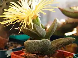 The plant is one of several species cultivated for their rocklike appearance, which are sometimes collectively called mesembs. With a minimum temperature of 7 °C (45 °F), in temperate regions it is grown under glass. It has gained the Royal Horticultural Society's Award of Garden Merit.[1][4]