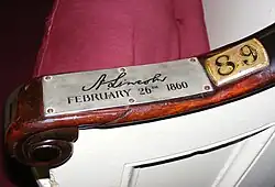 In October 1859, Plymouth Church extended an invitation to Abraham Lincoln to speak to the congregation, offering a fee of $200.[20][21] Lincoln accepted and attended services at the church on February 26, 1860.[22] A plaque now marks the pew where he sat. His lecture, initially planned for Plymouth, was moved to Cooper Union in Manhattan, where he delivered a speech opposing the expansion of slavery.[23][24][25]