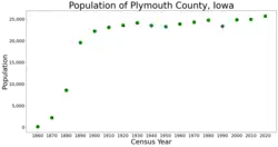 Plymouth County is a county located in the U.S. state of Iowa. As of the 2020 census, the population was 25,698.[1] The county seat is Le Mars.[2] Plymouth County was named after Plymouth, Massachusetts.[3]