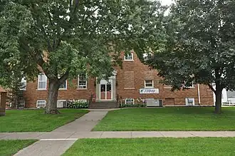 Plymouth County Historical Museum is located in Le Mars, Iowa, United States. The building was originally Le Mars Central High School. The first school building in the city was constructed on this block in 1876.[2] It was torn down in 1905 when the center part of this building was completed in 1905. The two-story, brick, Colonial Revival structure was designed by the Chicago architectural firm of Atchison and Edbrooke. Contractor for the project was John A. Huxtable of Le Mars. All 12 grades and the school district's administration were housed in the building. The first addition made to the school was completed in 1924. Sympathetic in style to the original building, the addition was designed by Beuttler & Arnold of Sioux City, and constructed by Devereux and Olsen of Minneapolis. It runs south and then west of the 1905 building and includes the gymnasium and auditorium. The final addition was completed in 1952 by Nemmers Brothers of Le Mars. Built onto the north side of the original building, it is typical of the 1950s "Industrial" style, and was designed by Beuttler as well.