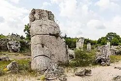 Pobiti Kamani occupies an area 8 km (5.0 mi) long and 3 km (1.9 mi) wide, running from north to south. There are seven groups of stone pillars. For example, "Dikilitash", the main group, includes over 350 stones. "Strashimirovo" features four rows of stones that are distinctive for their "bulging" middle segments.[4]
