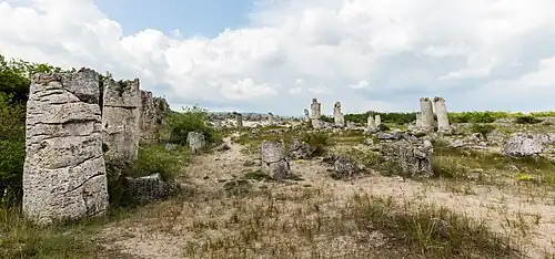 Pobiti Kamani (Bulgarian: Побити камъни, "planted stones"[1]), tubular concretions formed around "rising methane-bearing fluid plumes", is a desert-like rock phenomenon located on the north west Varna Province border in Bulgaria.
