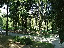 Almost the entire park area is covered with trees and shrubs, with few flower beds arranged near monuments.[5] The current tree population differs from the original due to multiple redesigns. Today's layout reflects a design by gardener Franciszek Szanior from the early 20th century, implemented during the 2000–2008 revitalisation.[3][5][6]