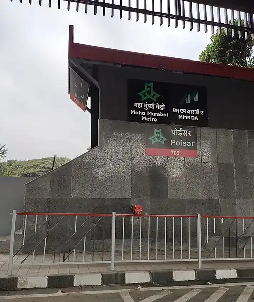 Poisar is an elevated metro station on the North-South corridor of the Red Line 7 of Mumbai Metro in Mumbai, India. This metro station was inaugurated on 2 April 2022 by Prime Minister Narendra Modi. [1][2][3]