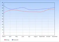| Month | Franklin D. Roosevelt (D) % | Thomas E. Dewey (R) % |