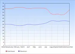 | Month | Dwight D. Eisenhower (R) % | Adlai Stevenson II (D) % |
