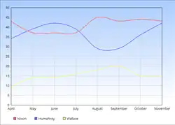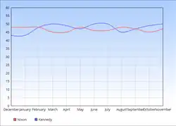 | Month | John F. Kennedy (D) % | Richard Nixon (R) % |