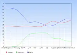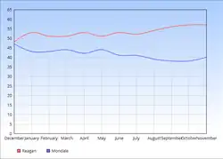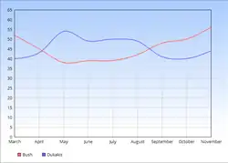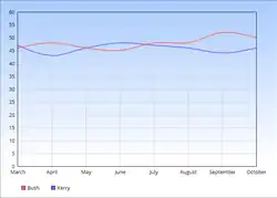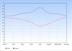 - ^ a b c d e f g h i j k l m n o p q r s t u v "Gallup Presidential Election Trial-Heat Trends, 1936-2008". gallup.com. Gallup, Inc. Archived from the original on June 30, 2017. Retrieved August 30, 2012.