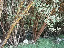 This species is fast growing, and is more ecological and adapts better than other species of the genus. It is a promising candidate for reforestation and agroforestry. This region is cold in the winter but has a dry climate; the herbage consists of various grasses and herbaceous plants, the wild potatoes Solanum acaule and Solanum bukasovii, and the woody shrubs P. racemosa, Mutisia acuminata, Baccharis sp., and Cantua buxifolia, which is the national flower of Peru.[5] In Ecuador it has been introduced from Peru, and this may be detrimental because it hybridises readily with the local species of Polylepis, of which there are eight, including the endemic species Polylepis lanuginosa. The Polyepsis forest plays an important role in the ecosystem of the region, acting as a sponge to retain moisture.[6]