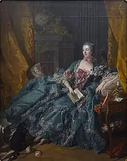 Madame de Pompadour had a longstanding artistic relationship with Boucher, often commissioning him to paint her portraits. In particular, Pompadour at Her Toilette can be seen as a collaborative work between Madame de Pompadour and Boucher.[8] As an artist in the eighteenth century, Boucher was a prominent figure in the Rococo movement.[8] However, his characteristic color palette garnered both admiration and criticism.[1]