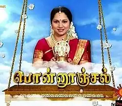 Ponnunjal is an Indian Tamil-language soap opera that aired on Sun TV from September 2, 2013 to October 22, 2016 for 940 episodes. It starred Shamitha, Vishwa, Manjula Parithala, Vanitha Hariharan, Shyam, Adhavan and Krithika Laddu.[1]