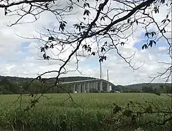 The Brotonne Bridge (pont de Brotonne) is a bridge in the region of Normandy in France, situated between the cities of Le Havre and Rouen. It has crossed the Seine since 1977, to the east of the commune of Caudebec-en-Caux. Its construction was financed by the General council of Seine-Maritime for the purpose of opening up the Pays de Caux and assuring a connection between the commune of Yvetot and the A13 autoroute by way of the forêt de Brotonne (Brotonne forest), from which the bridge gets its name. Only two bridges are located further downstream the Seine from the pont de Brotonne: the Pont de Tancarville and the Pont de Normandie.