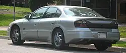 The 2000 Bonneville was restyled, using GM's G platform,[32] with the widest overall track in its competitive class at 62.6 in (1,590 mm) up front and 62.1 in (1,580 mm) in the rear. GM's StabiliTrak stability control system was introduced on the top-of-the-line supercharged SSEi model, later replaced by the GXP.